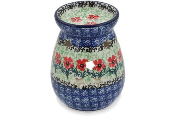 This Maraschino 4" Aroma Oil Burner Lamp was handmade and hand decorated in Boleslawiec, Poland by skilled artisans according to old traditional methods. This Polish stoneware is microwave, dishwasher, freezer, and oven safe up to 480°F. It does not contain lead or cadmium. It is part of the Maraschino Collection.