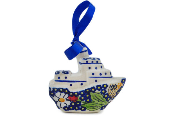 Boat Ornament 3" Vivid Garden Theme UNIKAT