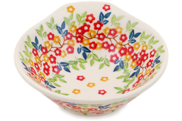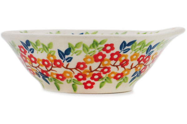 This Tropical Bloomscape 5" Bowl was handmade and hand decorated in Boleslawiec, Poland by skilled artisans according to old traditional methods. This Polish stoneware is microwave, dishwasher, freezer, and oven safe up to 480°F. It does not contain lead or cadmium. It is part of the Tropical Bloomscape Collection.