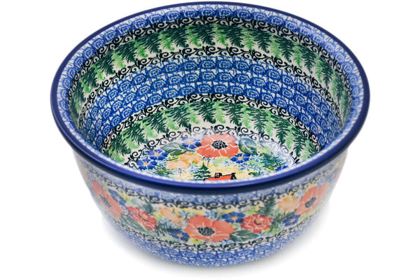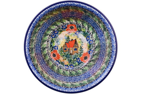 This Cabin Meadow 8" Bowl was handmade and hand decorated in Boleslawiec, Poland by skilled artisans according to old traditional methods. This is a Polish pottery Signature Unikat, which means that it has been hand painted with both sponges and brushes and it is signed by the artist who painted it. Unikat pieces are the most intricate works of art. Larger Unikat items take hours of very careful work to finish. This Polish stoneware is microwave, dishwasher, freezer, and oven safe up to 480°F. It does not contain lead or cadmium. It is part of the Cabin Meadow Collection.