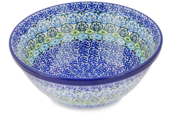 This Ocean Tulips 8" Bowl was handmade and hand decorated in Boleslawiec, Poland by skilled artisans according to old traditional methods. This Polish stoneware is microwave, dishwasher, freezer, and oven safe up to 480°F. It does not contain lead or cadmium. It is part of the Ocean Tulips Collection.