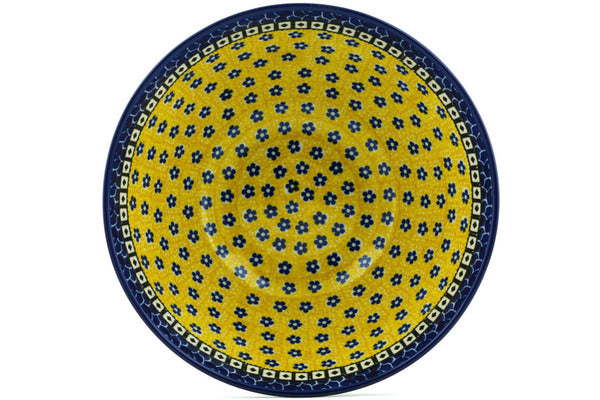 This Sunburst Daisies 9" Bowl was handmade and hand decorated in Boleslawiec, Poland by skilled artisans according to old traditional methods. This Polish stoneware is microwave, dishwasher, freezer, and oven safe up to 480°F. It does not contain lead or cadmium. It is part of the Sunburst Daisies Collection.