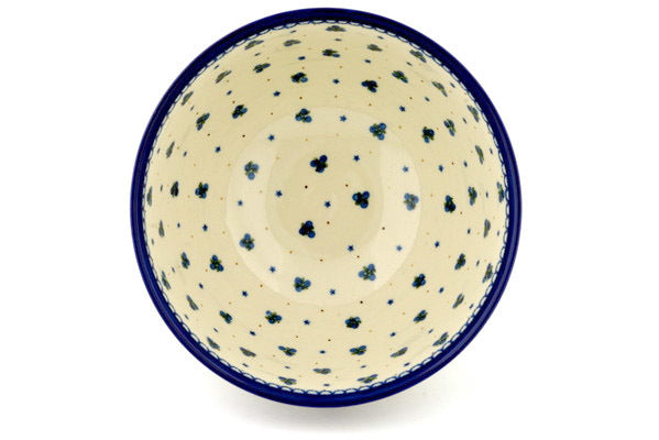 This Blueberry Stars 10" Bowl with Pedestal was handmade and hand decorated in Boleslawiec, Poland by skilled artisans according to old traditional methods. This Polish stoneware is microwave, dishwasher, freezer, and oven safe up to 480°F. It does not contain lead or cadmium. It is part of the Blueberry Stars Collection.