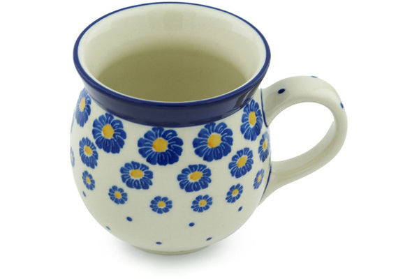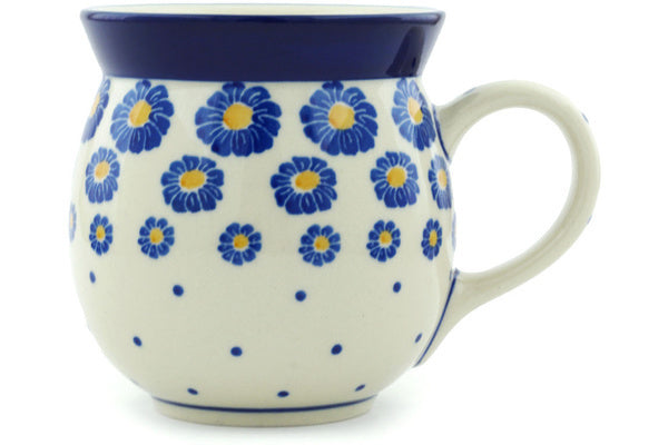 This Blue Zinnia 16 oz Bubble Mug was handmade and hand decorated in Boleslawiec, Poland by skilled artisans according to old traditional methods. This Polish stoneware is microwave, dishwasher, freezer, and oven safe up to 480°F. It does not contain lead or cadmium. It is part of the Blue Zinnia Collection.
