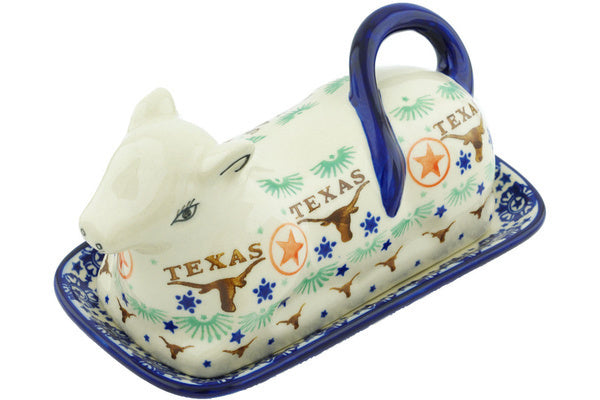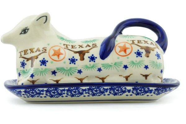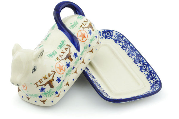 This Texas State 8" Butter Dish was handmade and hand decorated in Boleslawiec, Poland by skilled artisans according to old traditional methods. This Polish stoneware is microwave, dishwasher, freezer, and oven safe up to 480°F. It does not contain lead or cadmium. It is part of the Texas State Collection.