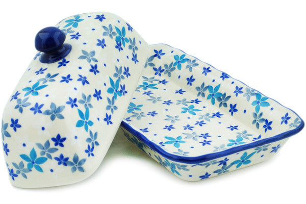 This Blossoms In The Frost 9" Butter Dish was handmade and hand decorated in Boleslawiec, Poland by skilled artisans according to old traditional methods. This Polish stoneware is microwave, dishwasher, freezer, and oven safe up to 480°F. It does not contain lead or cadmium. It is part of the Blossoms In The Frost Collection.
