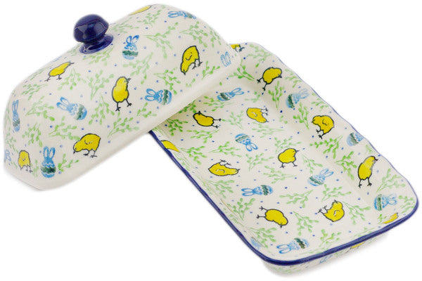 This Easter Day 9" Butter Dish was handmade and hand decorated in Boleslawiec, Poland by skilled artisans according to old traditional methods. This Polish stoneware is microwave, dishwasher, freezer, and oven safe up to 480°F. It does not contain lead or cadmium. It is part of the Easter Day Collection.