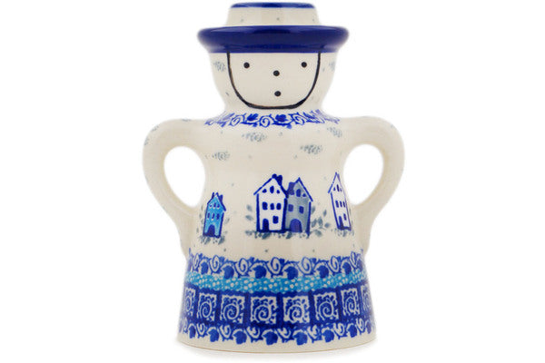 This Arctic Village 5" Candle Holder was handmade and hand decorated in Boleslawiec, Poland by skilled artisans according to old traditional methods. This is a Polish pottery Signature Unikat, which means that it has been hand painted with both sponges and brushes and it is signed by the artist who painted it. Unikat pieces are the most intricate works of art. Larger Unikat items take hours of very careful work to finish. This Polish stoneware is microwave, dishwasher, freezer, and oven safe up to 480°F. It does not contain lead or cadmium. It is part of the Arctic Village Collection.