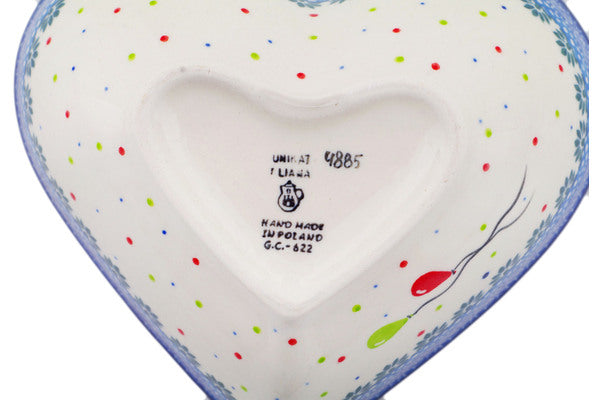 This Teddy Bear 7" Heart Shaped Bowl was handmade and hand decorated in Boleslawiec, Poland by skilled artisans according to old traditional methods. This is a Polish pottery Signature Unikat, which means that it has been hand painted with both sponges and brushes and it is signed by the artist who painted it. Unikat pieces are the most intricate works of art. Larger Unikat items take hours of very careful work to finish. This Polish stoneware is microwave, dishwasher, freezer, and oven safe up to 480°F. It does not contain lead or cadmium. It is part of the Teddy Bear Collection.