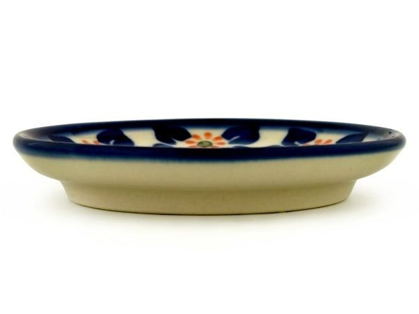 This Daisy Ribbons 4" Mini Plate, Coaster plate was handmade and hand decorated in Boleslawiec, Poland by skilled artisans according to old traditional methods. This Polish stoneware is microwave, dishwasher, freezer, and oven safe up to 480°F. It does not contain lead or cadmium. It is part of the Daisy Ribbons Collection.