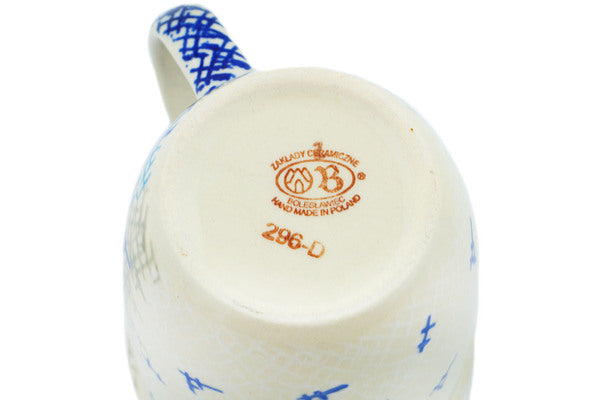 This Blue Burlap 12 oz Mug was handmade and hand decorated in Boleslawiec, Poland by skilled artisans according to old traditional methods. This Polish stoneware is microwave, dishwasher, freezer, and oven safe up to 480°F. It does not contain lead or cadmium. It is part of the Blue Burlap Collection.