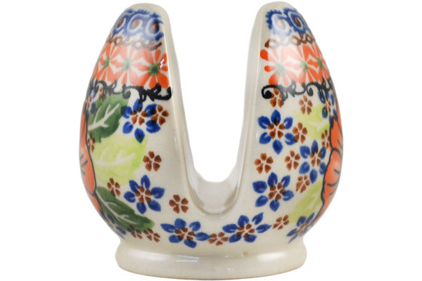 This Orange Zinnia 3" Napkin Holder was handmade and hand decorated in Boleslawiec, Poland by skilled artisans according to old traditional methods. This is a Polish pottery Signature Unikat, which means that it has been hand painted with both sponges and brushes and it is signed by the artist who painted it. Unikat pieces are the most intricate works of art. Larger Unikat items take hours of very careful work to finish. This Polish stoneware is microwave, dishwasher, freezer, and oven safe up to 480°F. It does not contain lead or cadmium. It is part of the Orange Zinnia Collection.