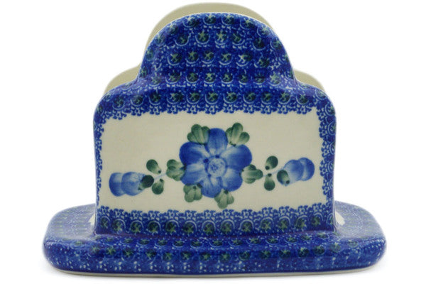 This Blue Poppies 7" Napkin Holder was handmade and hand decorated in Boleslawiec, Poland by skilled artisans according to old traditional methods. This Polish stoneware is microwave, dishwasher, freezer, and oven safe up to 480°F. It does not contain lead or cadmium. It is part of the Blue Poppies Collection.