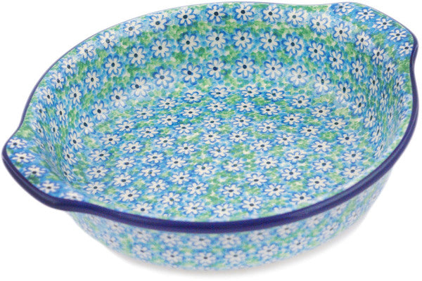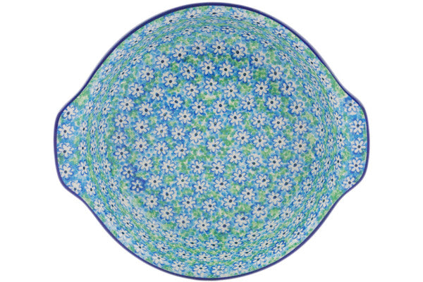This Lily Lovely 9" Round Baker with Handles was handmade and hand decorated in Boleslawiec, Poland by skilled artisans according to old traditional methods. This Polish stoneware is microwave, dishwasher, freezer, and oven safe up to 480°F. It does not contain lead or cadmium. It is part of the Lily Lovely Collection.