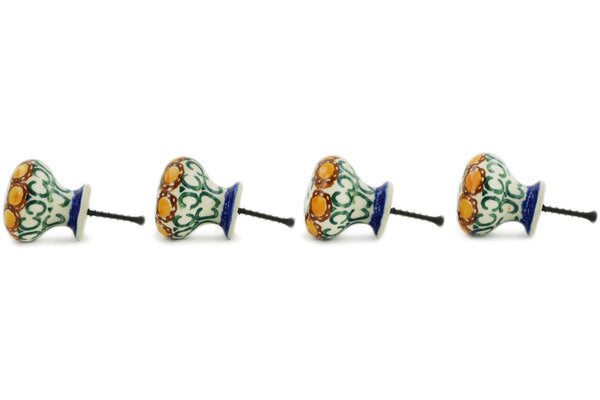 Set of 4 Drawer Pull Knobs Blue Leaves Theme