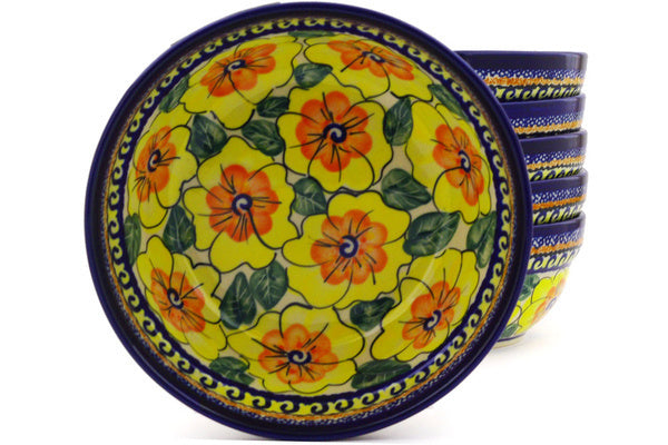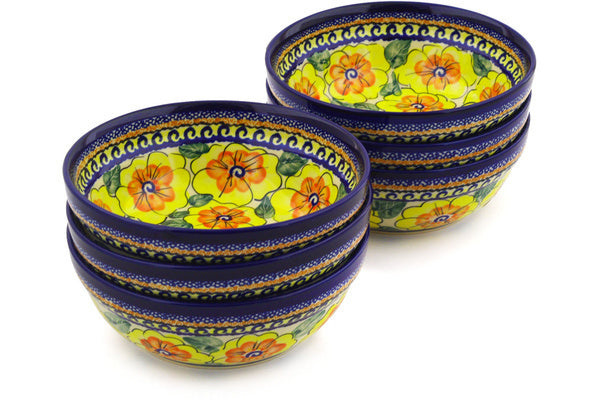 Set of 6 Bowls Lemon Poppies Theme UNIKAT