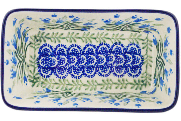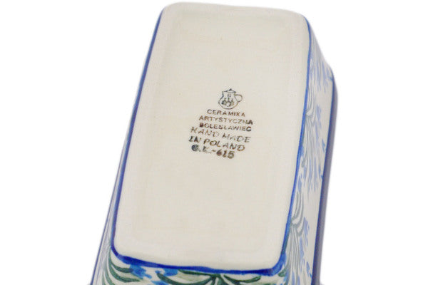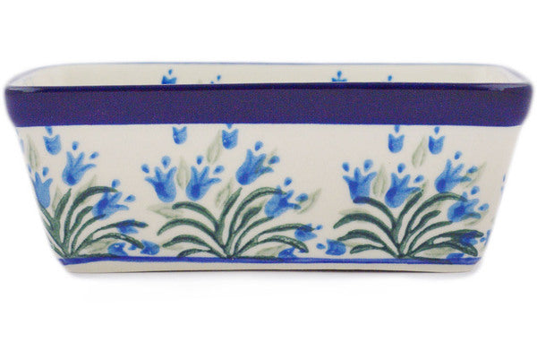 This Feathery Bluebells 6" Mini loaf pan was handmade and hand decorated in Boleslawiec, Poland by skilled artisans according to old traditional methods. This Polish stoneware is microwave, dishwasher, freezer, and oven safe up to 480°F. It does not contain lead or cadmium. It is part of the Feathery Bluebells Collection.