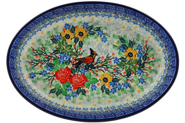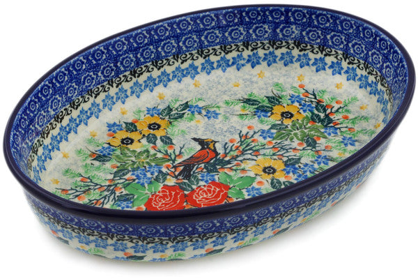 Oval Baker 11" Woodpecker Meadow Theme UNIKAT