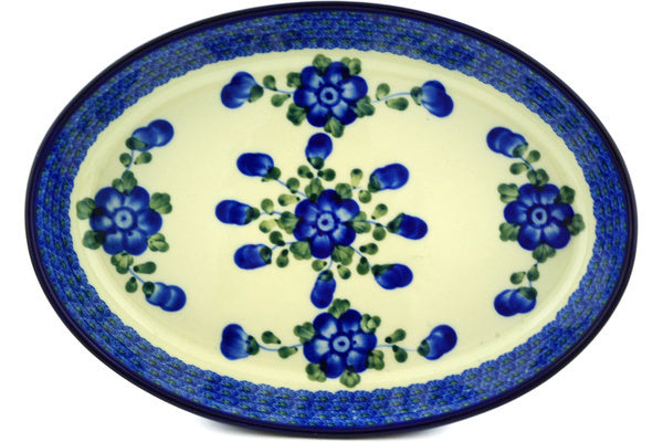 This Blue Poppies 12" Oval Baker was handmade and hand decorated in Boleslawiec, Poland by skilled artisans according to old traditional methods. This Polish stoneware is microwave, dishwasher, freezer, and oven safe up to 480°F. It does not contain lead or cadmium. It is part of the Blue Poppies Collection.