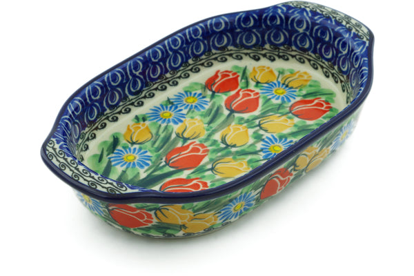 Oval Baker with Handles 8" Breathtaking Tulips Theme UNIKAT