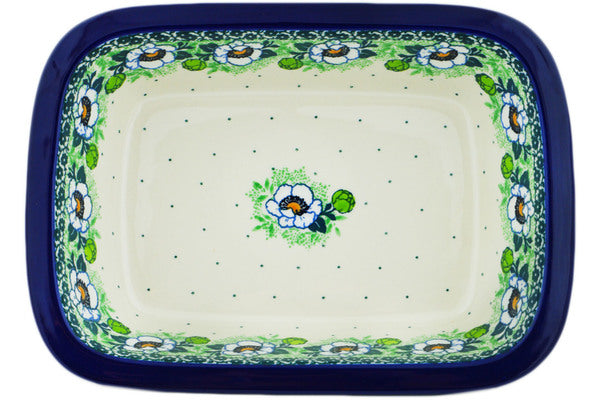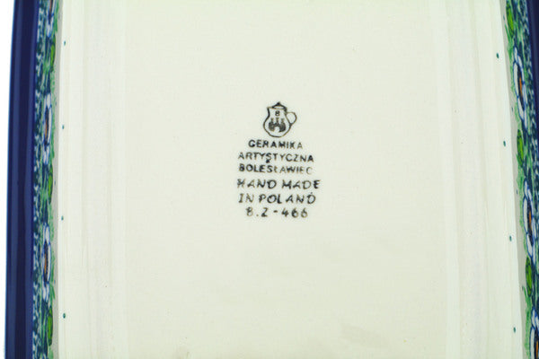 This Green Flora 10" Rectangular Baker was handmade and hand decorated in Boleslawiec, Poland by skilled artisans according to old traditional methods. This Polish stoneware is microwave, dishwasher, freezer, and oven safe up to 480°F. It does not contain lead or cadmium. It is part of the Green Flora Collection.
