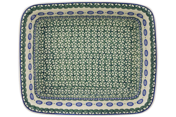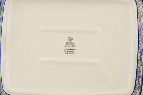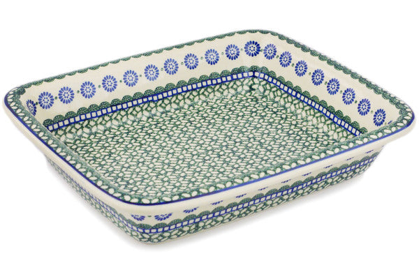 This Maia 14" Rectangular Baker was handmade and hand decorated in Boleslawiec, Poland by skilled artisans according to old traditional methods. This Polish stoneware is microwave, dishwasher, freezer, and oven safe up to 480°F. It does not contain lead or cadmium. It is part of the Maia Collection.