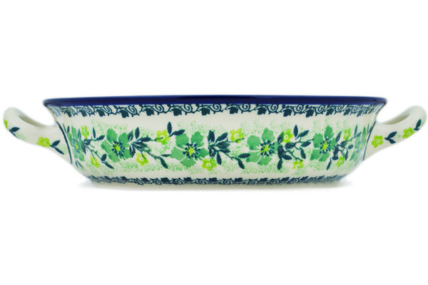 Round Baker with Handles Medium Evergreen Wreath Theme