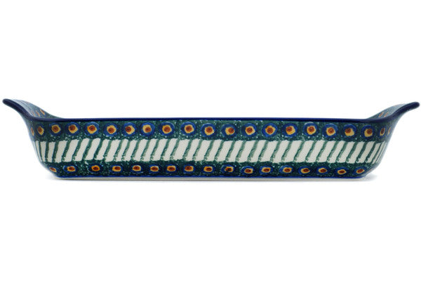 Rectangular Baker with Handles 13" Emerald Peacock Theme