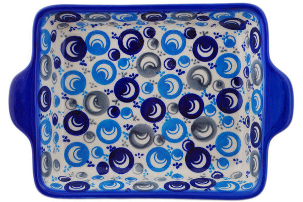 Rectangular Baker with Handles 9" Blue Peacock Eye Theme