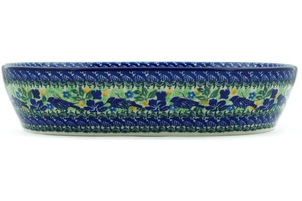 Bowl 14" Sitting Blue Birds Theme UNIKAT