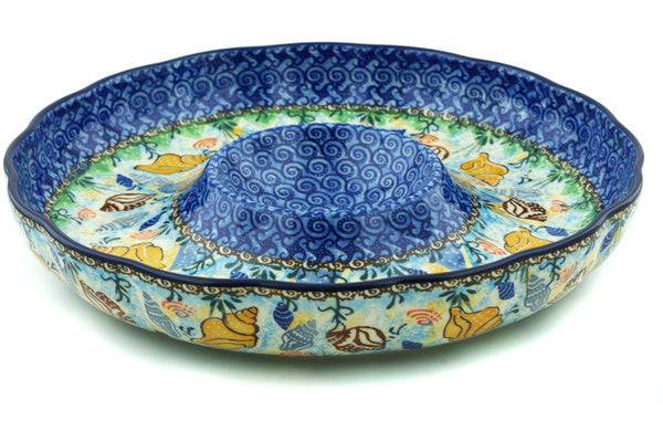 Chip and Dip Platter 12" Ocean Whisper Theme UNIKAT