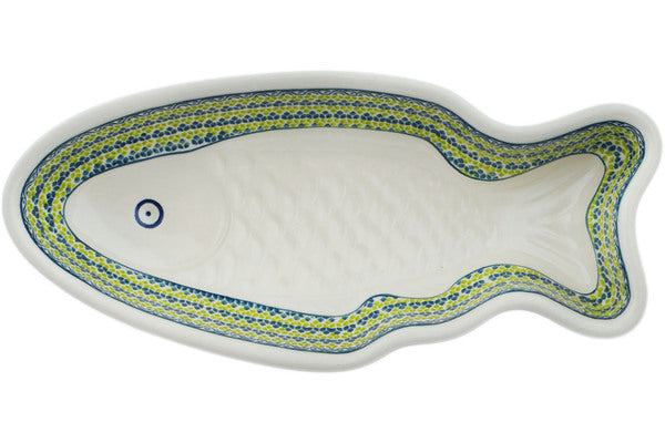 Fish Shaped Platter 14" Green Leaves Theme