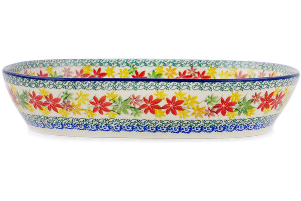 This Fall Vibes 12" Platter was handmade and hand decorated in Boleslawiec, Poland by skilled artisans according to old traditional methods. This Polish stoneware is microwave, dishwasher, freezer, and oven safe up to 480°F. It does not contain lead or cadmium. It is part of the Fall Vibes Collection.