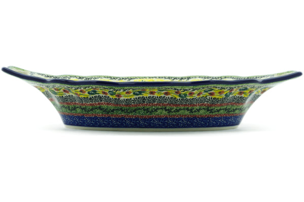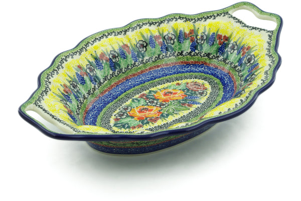 Platter with Handles 13" Copper Rose Meadow Theme UNIKAT