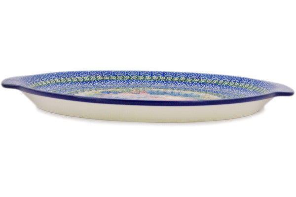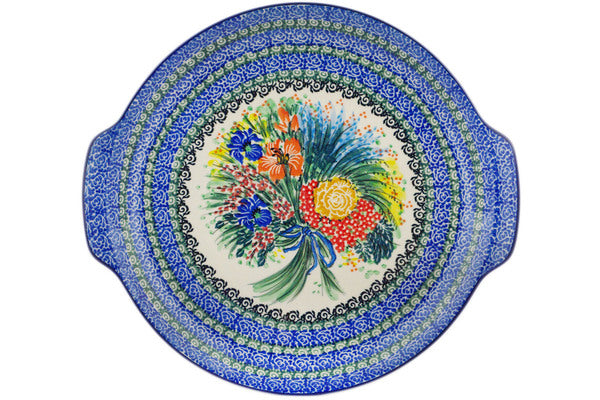 Platter with Handles 13" Iris Bouquet Theme UNIKAT