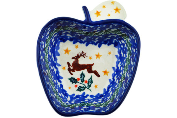 Apple Shaped Bowl 4" Prancing Reindeer Theme
