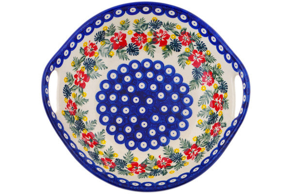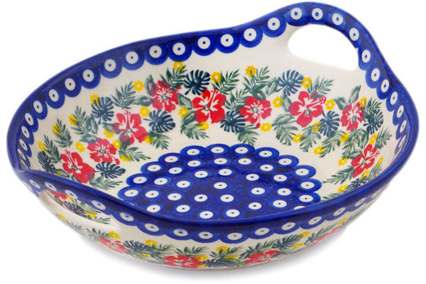 Bowl with Handles 10" Tropical Peacock Theme UNIKAT