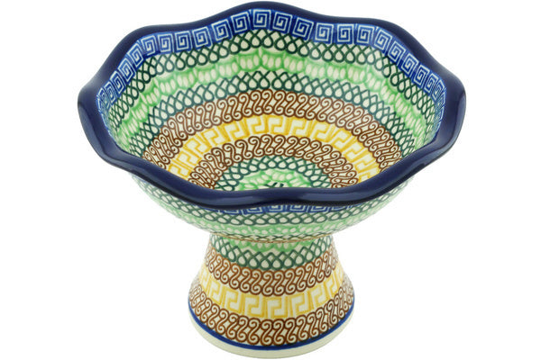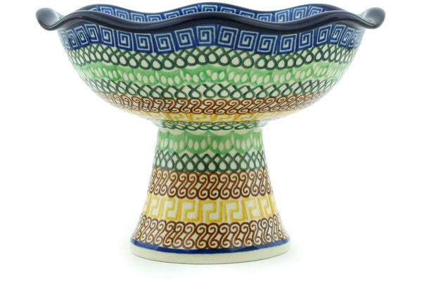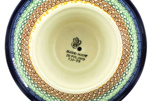 This Braided Rug 8" Bowl with Pedestal was handmade and hand decorated in Boleslawiec, Poland by skilled artisans according to old traditional methods. This Polish stoneware is microwave, dishwasher, freezer, and oven safe up to 480°F. It does not contain lead or cadmium. It is part of the Braided Rug Collection.