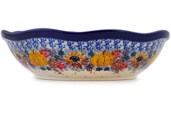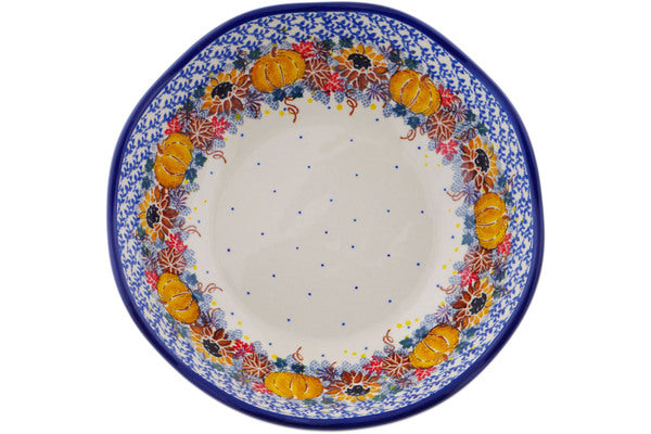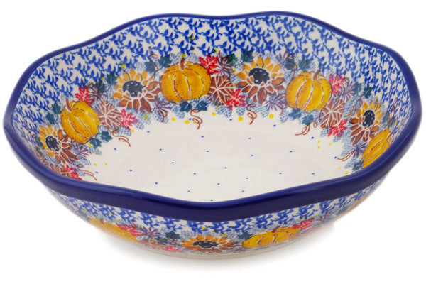 Scalloped Bowl 10" Autumn Falling Leaves Theme UNIKAT