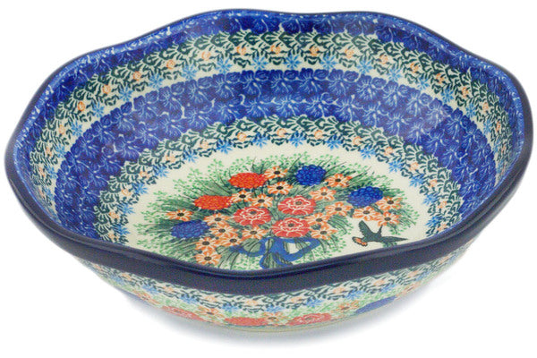 Scalloped Bowl 10" Hummingbird Bouquet Theme UNIKAT