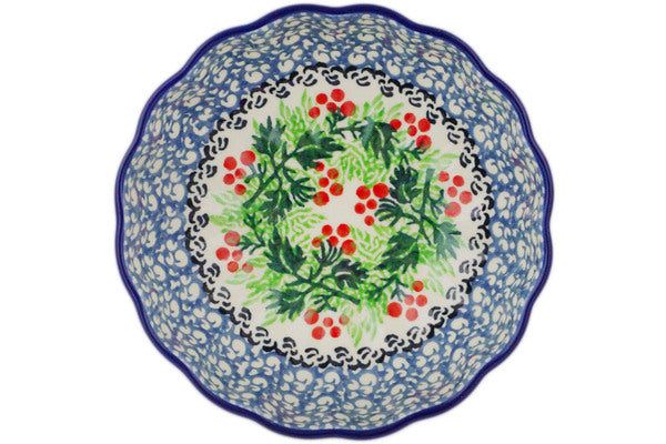 Scalloped Fluted Bowl 5" Holly Berry Wreath Theme