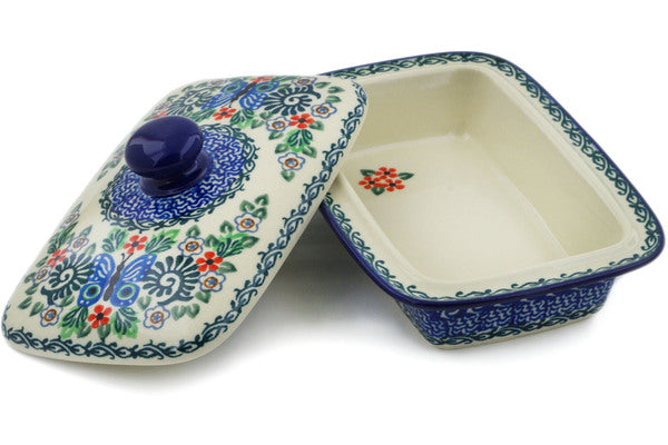 Butter Dish 7" Blue Butterfly Brigade Theme UNIKAT