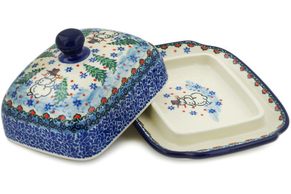 Butter Dish 7" Dancing Snowman Theme UNIKAT