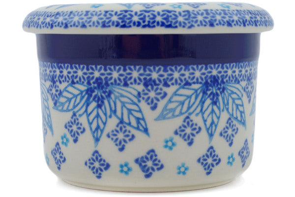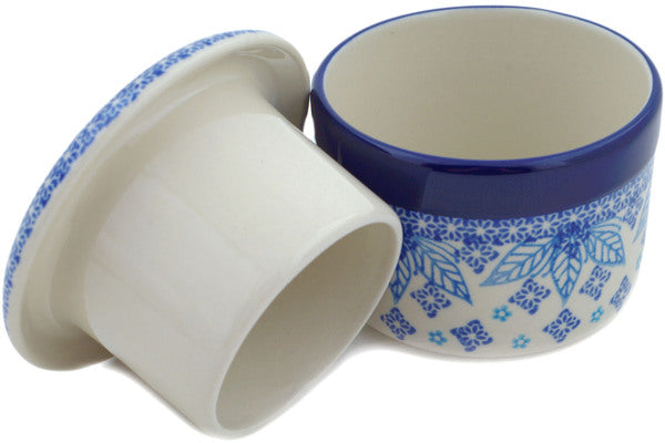 French Butter Dish 4" Blue Poinsettia Theme UNIKAT