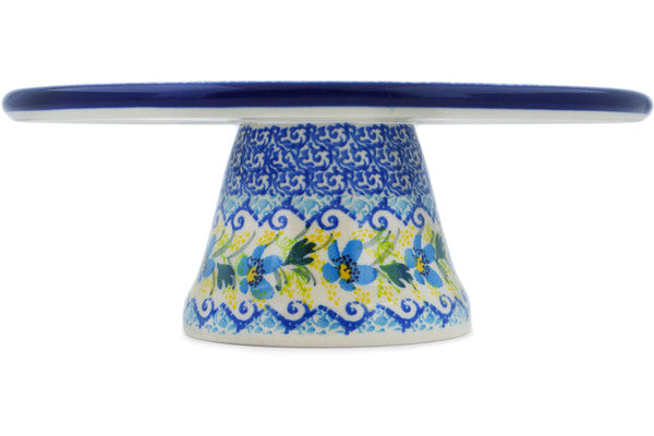 This Delightful Day 8" Cake Stand was handmade and hand decorated in Boleslawiec, Poland by skilled artisans according to old traditional methods. This is a Polish pottery Signature Unikat, which means that it has been hand painted with both sponges and brushes and it is signed by the artist who painted it. Unikat pieces are the most intricate works of art. Larger Unikat items take hours of very careful work to finish. This Polish stoneware is microwave, dishwasher, freezer, and oven safe up to 480°F. It does not contain lead or cadmium. It is part of the Delightful Day Collection.