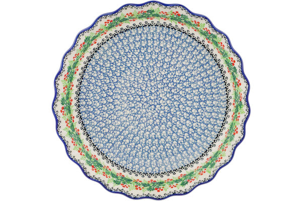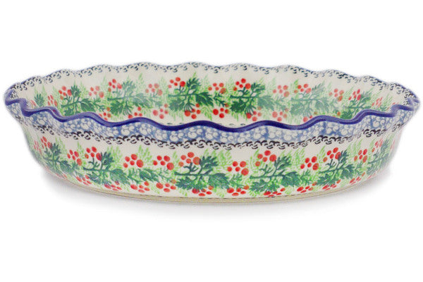 Fluted Pie Dish 10" Holly Berry Wreath Theme