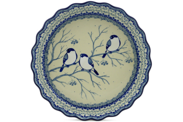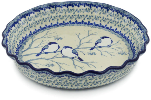 Fluted Pie Dish 10" Waiting Birds Theme UNIKAT