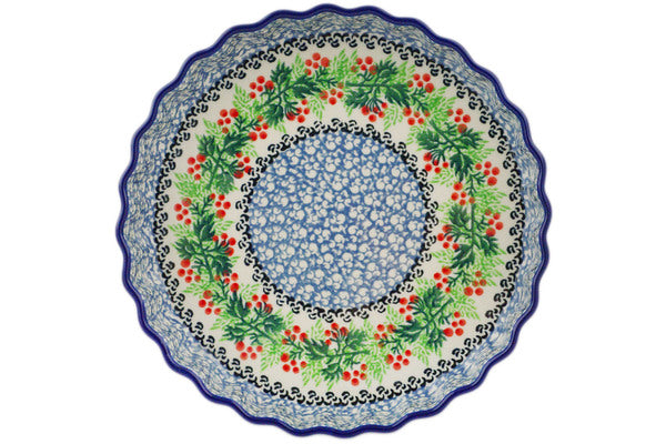 Fluted Pie Dish 8" Holly Berry Wreath Theme