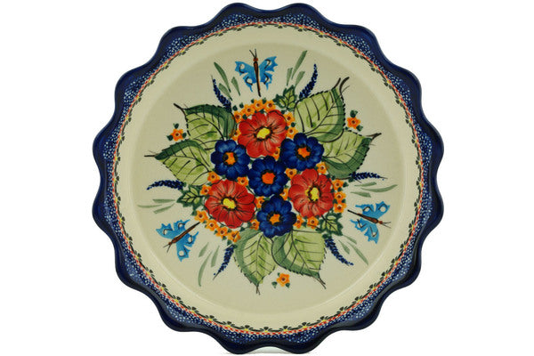 Fluted Pie Dish 8" Spring Splendor Theme UNIKAT