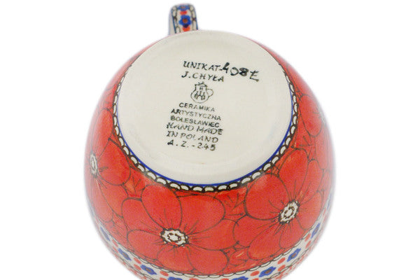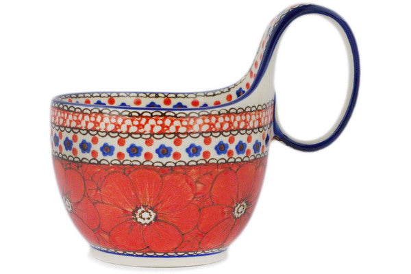 Bowl with Loop-Handle 16 oz Crimson Poppies Theme UNIKAT